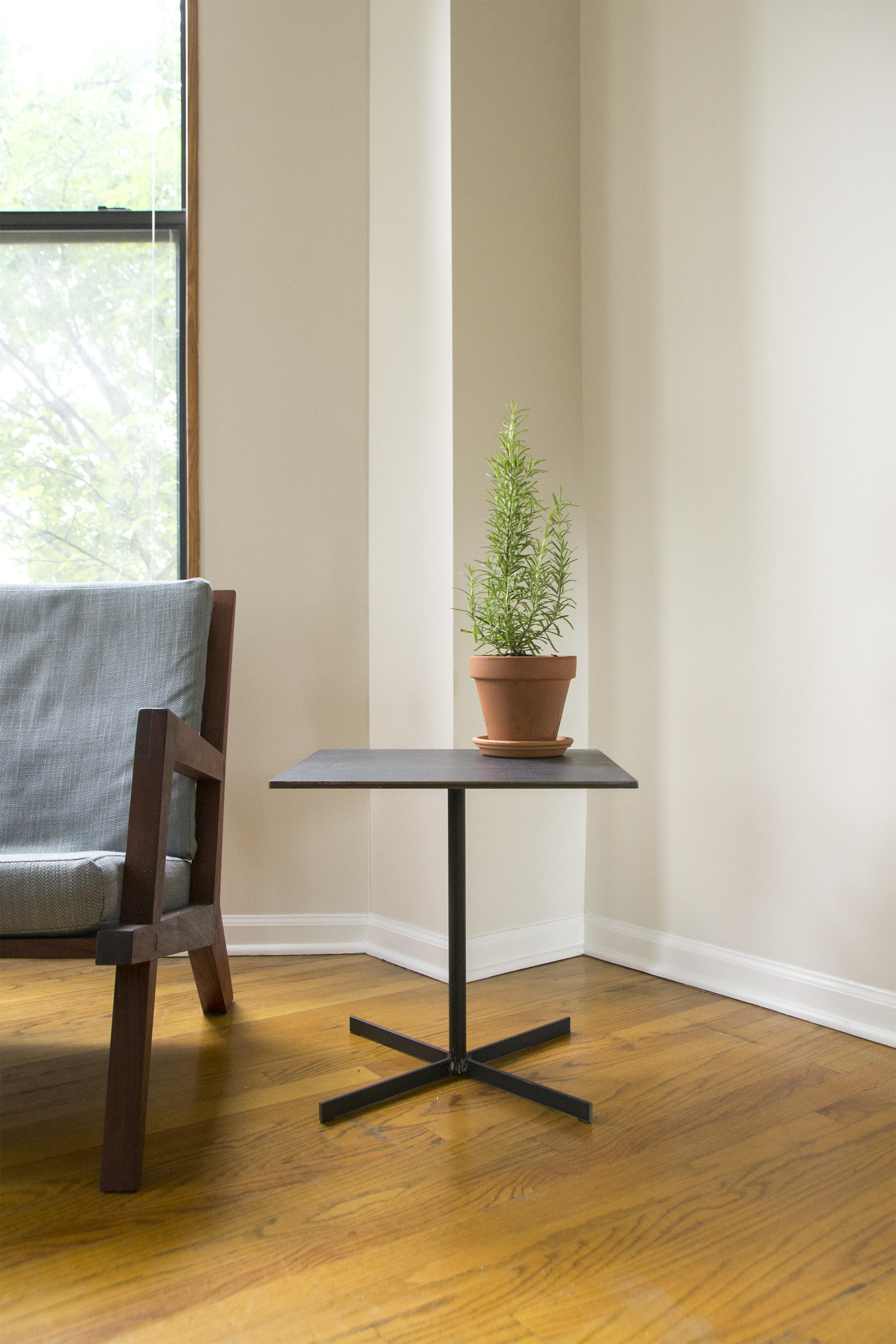 All steel, welded side tables. 18 in. by 18 in. by 18 in. 50 KSI Carbon steel used for the tables, and 70 KSI weld material. Matte polyurethane finish. Production of 5.